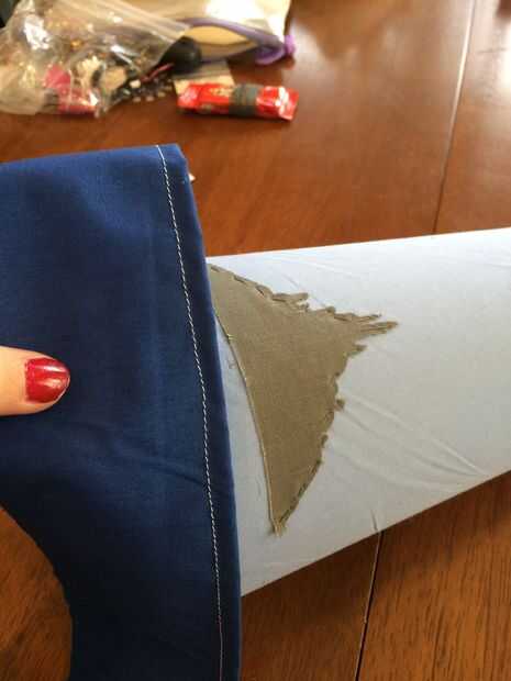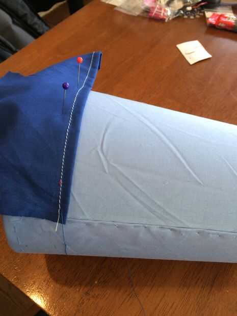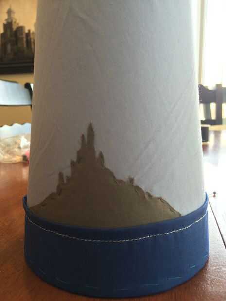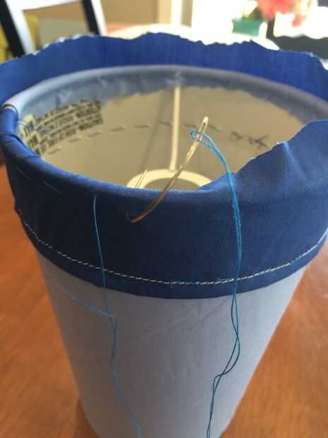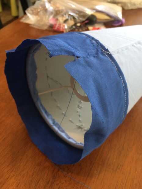 Otra vez, sólo utilice sus pernos para mantener a la tela en su lugar, tire firmemente a menudo, cose con el hilo correcto con la cola debajo de la linterna y no dude en cortar tela extra cuando usted sabe cuánto necesita. Coser alrededor del borde/fondo de la pantalla para ocultar la tela restante y cubrir el fondo entero de la pantalla.