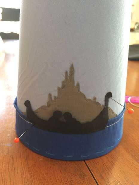 Decide donde que debe ir la canoa, use pernos para sujetarlo mientras cose con el hilo negro.