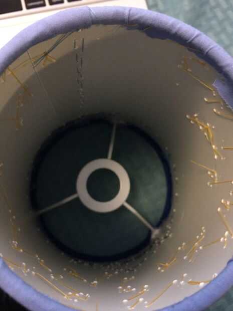 Ahora que el exterior parece todo hermoso, el interior de la pantalla parece un lío enredado. (Valga la redundancia). Para esto siguiente paso, utilizas la tela azul luz restante usted al principio y cubre el interior de la pantalla. La razón por la que no hice esto antes y lo están haciendo ahora es cubrir todo el hilo. No sólo parece mala, pero cubrir encima de ayudará con el siguiente unos pasos cuando se trabaja con el hilo conductor. Confía en mí en esto.