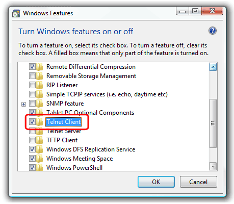 Ahora haga doble clic en "instalar o desinstalar programas", desde aquí seleccionar "Cliente Telnet". Ahora se instala Telnet.