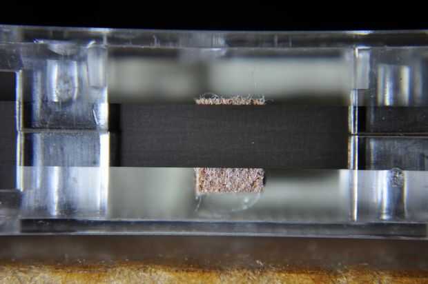 por último, busque depósitos mohosos en el carrete de cinta. Mira la cinta de la foto 1. Si había manchas blancas o copos diseminados al azar en la cinta de cola de espera para arriba sería una bandera roja que la cinta estaba en un ambiente muy húmedo de la misma pueden romper hacia abajo. pasar en esa cinta.