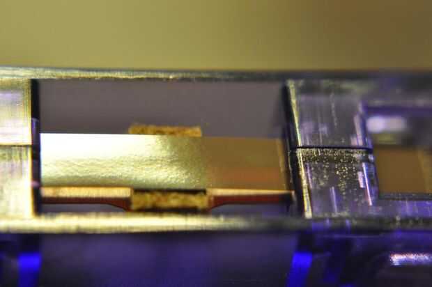 tomar su pinky shove en el agujero de la bobina de la cinta y la cinta del viento hasta pasar la tira de líder y busca realmente en cinta magnética. usted necesita tener buena vista para esto o llevar una lupa. Fotos 2 y 3 muestran la superficie de dos cintas diferentes de low-end. Nota el color es inconsistente, casi como alguien arrastra un gato enojado a través de él. una superficie que es un signo delator de una cinta lowend. el color debe ser sólido con sin rayas y la superficie debe tener un buen pulimento.