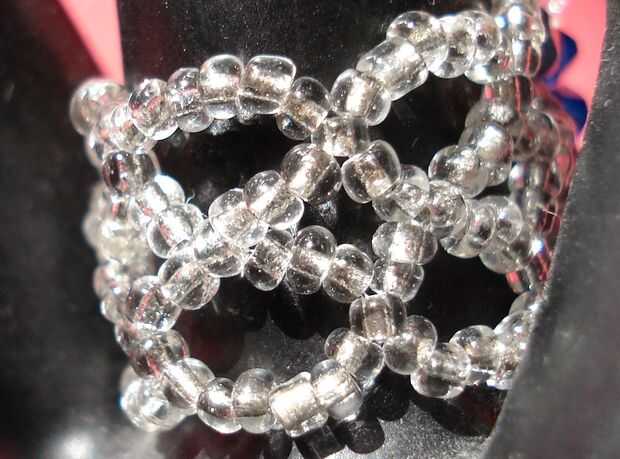 Ir al lado opuesto, así que si de un hilo de lado sale de medio grano Checo y uno en el extremo de los 3 granos checos. Para medio uno Agregue 2 granos entonces dejaron la aguja a través de 3 semillas de bolas de banda simplemente añadir 3 más granos de la semilla, en otro hilo añadir 6 granos, añadir 1 grano más en un hilo por con aguja enfrente, hasta que haya terminado la banda
