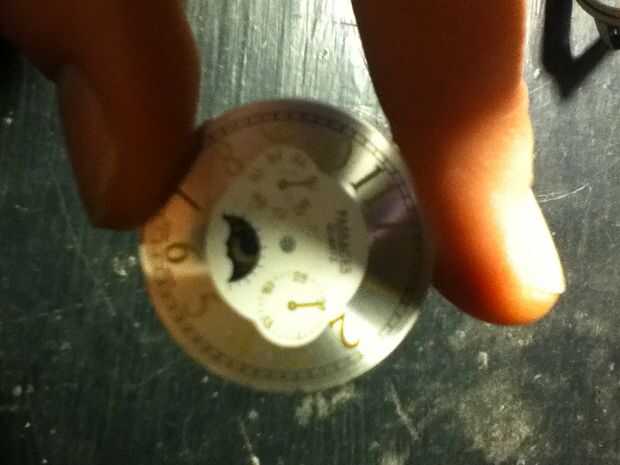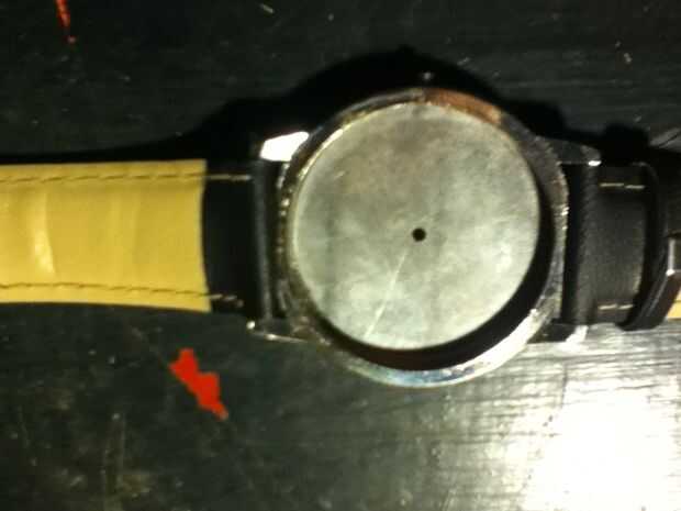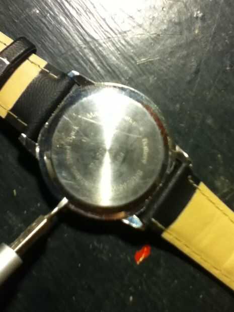 Primer probablemente encontrará una barra capaz de twist del reloj externo. Te recomiendo simplemente tirando hacia fuera con unos alicates. Después de esto usas el destornillador para quitar la parte de atrás. A continuación, debe extraer el funcionamiento interno (lo siento no hay ninguna foto del mecanismo lo hice antes de este instructable). Para ello puede que necesite tenazas dependiendo del reloj.  Al quitar el mecanismo de las manos primero entonces el resto debe apenas resbale hacia fuera. Después de esto puede mantener o desechar el mecanismo restante pero mantener la cara del reloj para ocultar su secreto.