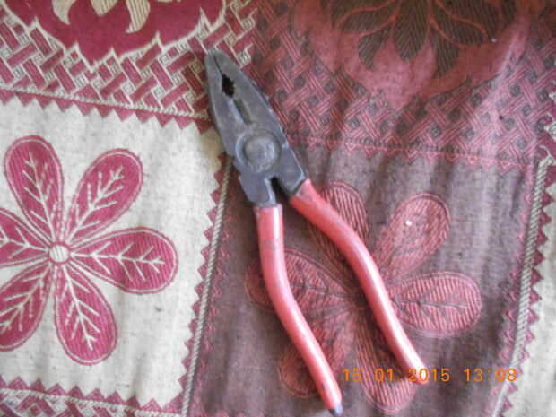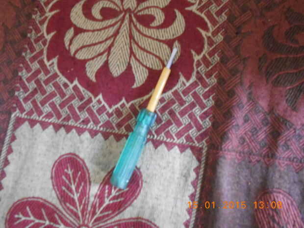 2. un destornillador o cualquier otra cosa con un plástico la capa en un extremo y el conductor del otro].