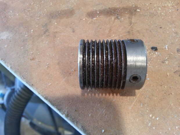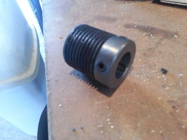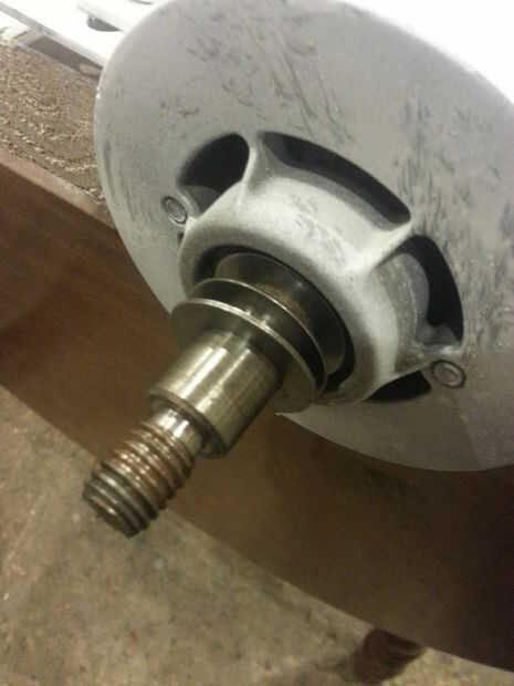 Para cumplir con el volante a la conversión de tuerca taladré agujeros de 1/4 de pulgada alrededor del borde del cubo de correa en el volante. Perforó los agujeros tan juntas como pude. Luego volvió y funcionó una broca de 3/8 de pulgada a través de los mismos orificios. Llevó a cabo el metal entre los agujeros y me dejaron con una tuerca del eje del motor con muy desiguales los bordes. Utilicé una lijadora de banda para suavizar los bordes rugosos perforados de la tuerca. Perforado y había grabado dos agujeros de 1/4 de pulgada en la tuerca por lo que podría bloquear al eje. Hay otras maneras que uno puede lograr la conversión desde el volante a la tuerca pero a mi me funciono gran y no requiere de herramientas de Taller mecanico que no tengo.