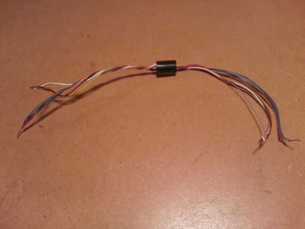 Me sorprendió cómo la gente que construyó aerogeneradores no proporcionan un método de mantener los cables de alimentación de conseguir enredado como la turbina de viento dio vuelta encima de sus torres. Más no mencionó este tema en sus instrucciones y simplemente ignorado cualquier duda sobre lo presentado en los comentarios. No estaba a punto de poner un aerogenerador sin forma para evitar los enredados cables. Decidí usar un anillo de deslizamiento. Un anillo de deslizamiento 30 amp especial para turbinas de viento cuesta en cualquier lugar de $35 a $75. Encontré uno realmente pequeño en Ebay para $10. Tiene 10 pequeños hilos que salen de cada uno de los dos extremos. Dividí los cables en paquetes de 5 cables. Las especificaciones dicen que cada conductor encargará de 2 amperios por lo que la capacidad de potencia total con los alambres en 5 años es de 10 amperios. Pensé que sería un montón de mi turbina. Tubería en cada paquete del encogimiento del calor un poco de cables mantenidos todo limpio buscando.