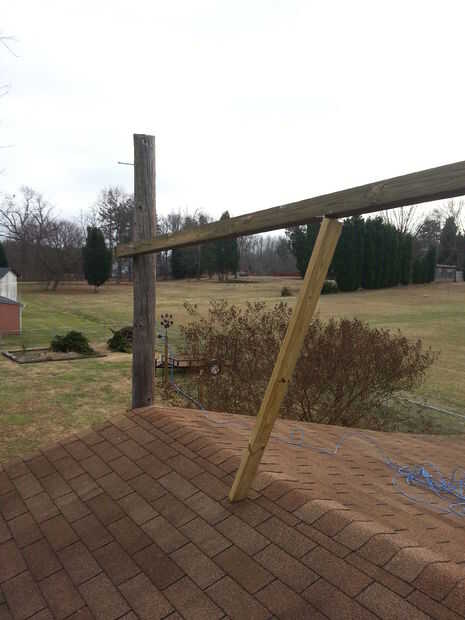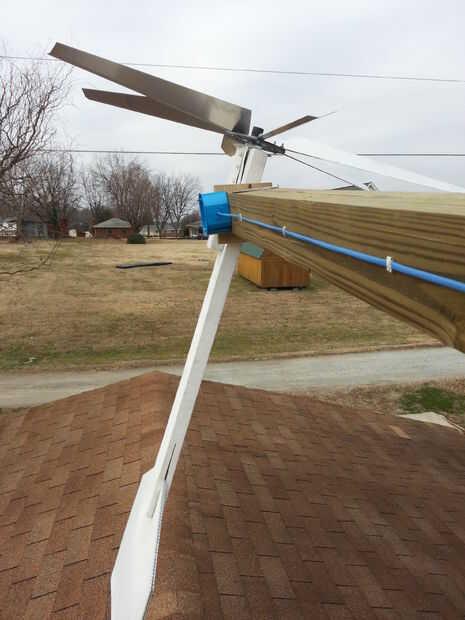 Tengo un viejo poste de luz sin usar al lado de mi garaje que hizo un montaje perfecto para mi turbina eólica. He comprado un pie 16 tratado 4 x 4 y algunos grandes los pernos de barandas y pasamanos ($25) y montado a un extremo del 4 x 4 cerca de 3 pies de la parte superior del poste de luz con un solo perno. Este perno actuaría como una bisagra cuando poner el polo o tomar abajo. Pongo otro perno al lado de donde el polo sería cuando es levantado. Este tornillo es evitar que el 4 x 4 va central cuando alcé vertical. Os adjunto un 3 pies largo tratadas 2 x 4 al 4 x 4 con una bisagra de la puerta para que el 2 x 4 serviría como una pierna para el 4 x 4 largo para sentarse mientras os adjunto el conjunto motor y aleta caudal al final de la 4 x 4. Cuando alcé el poste vertical 2 x 4 le mentiras contra los 4 x 4. Con todo conectado simplemente caminé 4 x 4 recta y funcionó un segundo perno a través de él y en el poste de luz cerca de la cima. El poste de luz y 16 pies 4 x 4 ponen mi turbina eólica a 32 pies de la tierra.