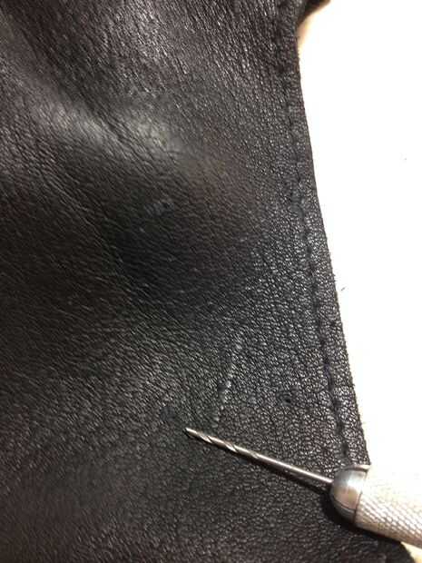 Solía mi taladro de baja velocidad perfore los agujeros en el dispositivo de LED en la foto superior. Para el guante de cuero yo manualmente los agujeros perforados. Te sugiero no usar el taladro para brocas menores de.5 mm ya que sería muy fácil para ellos a doblarse o quebrarse.