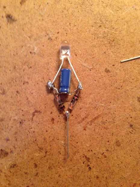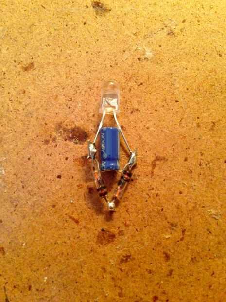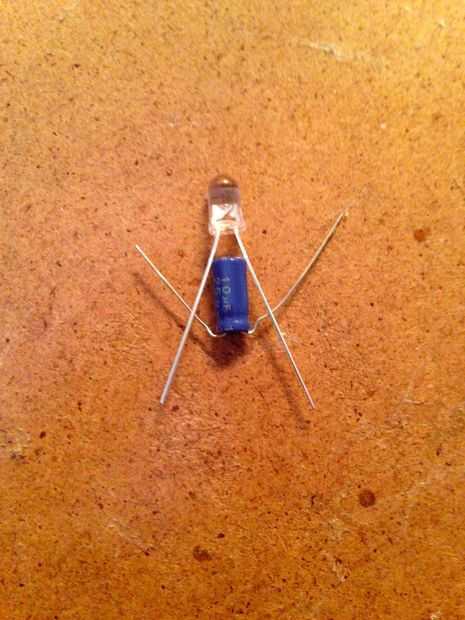 Tenga en cuenta lado positivo pata larga del LED va al condensador y corto va al negativodel lado de la.
