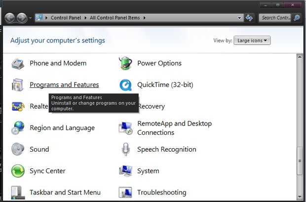 Haga clic en "programas y características" (o haga clic en "Programas" Si estás en modo de categoría).