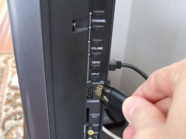 Finallyy, conectar el otro extremo del cable HDMI al conector de entrada de TV LCD.