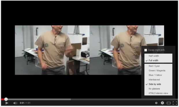 Elija el enlace "Opciones" en el menú emergente. Asegúrese de que las selecciones que se muestra. "Completo ancho" en el menú superior y "Al lado" en el menú inferior. Puede que necesite volver a este menú y elija la casilla "Swap (derecha-izquierda)" en la parte superior si el video parece ser interior cuando se juega.