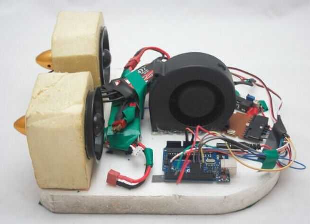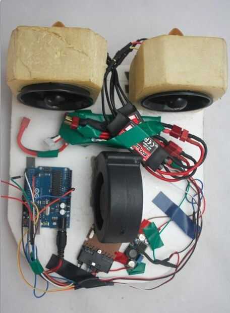 Cargar el código en la placa Arduino y probar los ventiladores sin escobillas. El aerodeslizador se fabrica ahora completamente.