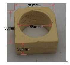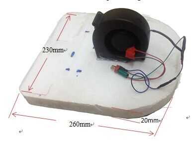 Corte dos bloques del mismo de plástico celular con forma cúbica. Cavar un agujero de cilindro en cada bloque de plástico, que tiene el mismo tamaño de un ventilador sin cepillo. Tenga cuidado de que el tamaño debe ser exactamente, que sobre todo no puede ser todo más grande que el tamaño del ventilador, para evitar que el ventilador empujar fuera el plástico cuando está en funcionamiento. sigue la figura.