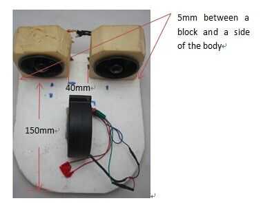 Conectar todos los aparatos eléctricos con cables siguiendo el esquema anterior. Fans de cosas de dos en los orificios del cilindro excavado en el paso anterior. Pegar todas las partes del cuerpo plástico según una regla que debe el centro de masa en el centro del aerodeslizador. Para las masas reales de todas las partes no son completamente lo mismo que hemos utilizado, no podemos proporcionar una posición exactamente igual de cada parte. El plan de colocación de nuestro hovercraft es en el paso 8, que puede ser utilizado como una referencia.