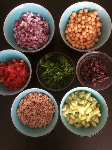 • 1 taza (seco aproximadamente 1/2 taza) de farro cocido (preferiblemente enfriado)