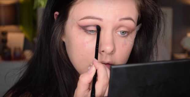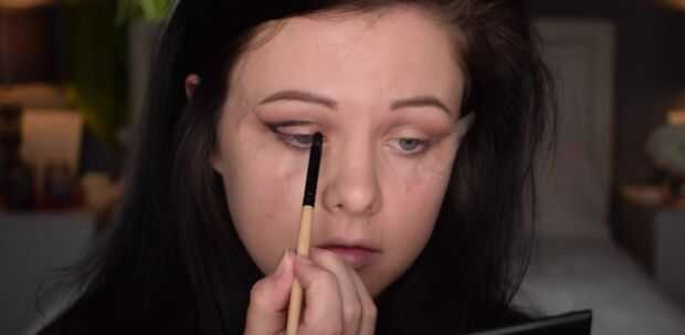 Entonces con la pantalla en negro I primero había aplicado esto en la esquina exterior y había alado de esto. Esto puede ser tan complicada como quieras ya que tiene el celo hay que ayudar a limpiar para arriba. También desea llevar el negro en el pliegue y abajo la tapa interna. Luego con una brocha fluffy necesita mezclar esto. se trata de un proceso lento por lo que poco es mejor. Luego puede ir y mantenga el edificio hasta que esté feliz.