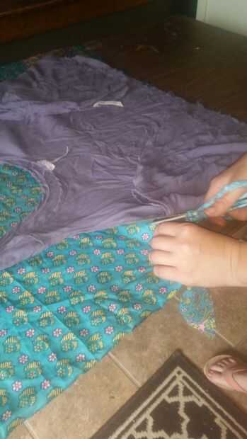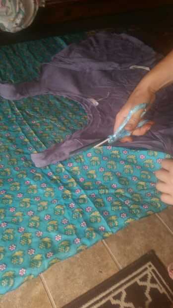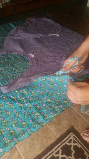 3. corte alrededor del tanque, dejando margen de costura de.5 pulgada alrededor de los lados de tapas.