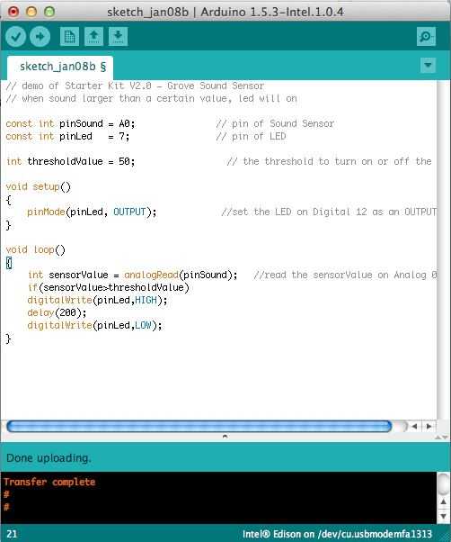 Al chasquido de mis dedos por el sensor de sonido, el LED se ilumina! Estamos en el negocio...