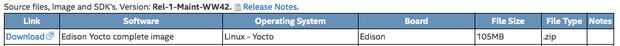 Ahora tiene que el nuevo firmware de aquí. Seleccione "Imagen completa Edison Yocto" descargar y descomprimir el archivo (a menos que estás usando Safari, que se descomprime para usted). Copie estos archivos en la unidad de Edison (arrastre y suelte en su icono en el escritorio).