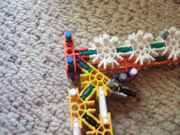 esta es un arma de KVG que usted puede hacer si no tienes muchas piezasPaso 1: Reunir las piezas para hacer el arma que vas a necesitarmango2 conectores verdes2 barras verdesbarra azul 14 conectores de púrpuraCañón3 barras rojas2 barras amarillas2 ba