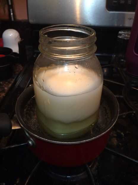 4) Vierta el sebo en un tarro (que vierte a través del filtro de café en la jarra o a través del filtro en un recipiente más fácil y luego Vierta en un frasco).