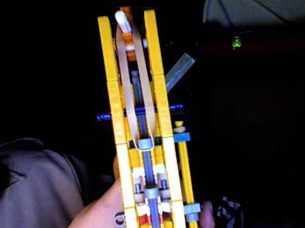 se trata de una pistola automática de la semi. Me dio la idea de revista tolva Ednator55. Esta tolva nunca jams. Esta pistola dispara unos 20-25 pies y puede perforar una caja de cartón con una varilla afilada. (Yo usé 2 gomas en esta prueba) DISFRUT