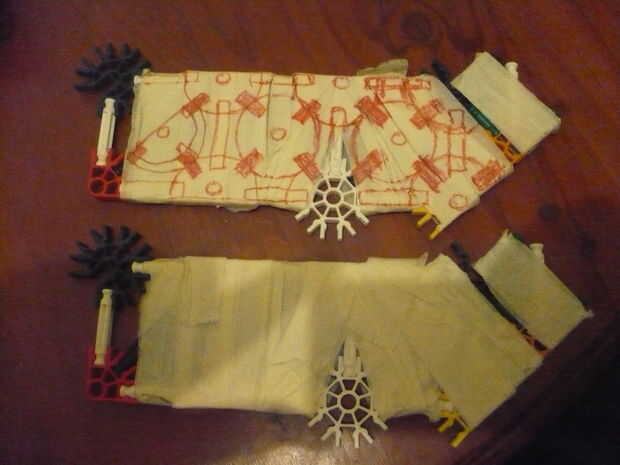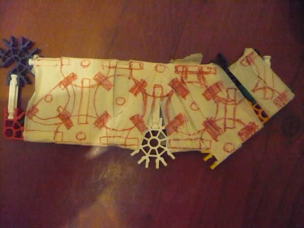 bueno Foto 17 y 18), sé era demasiado perezoso para retirar la cinta, pero, he tomado la libertad de dibujar formas para ayudarle con la construcción de los brazos, también puede sustituir los conectores blanco/amarillo y barras para los paneles planos que tengo en la mía, pero me siento, es demasiado endeble para comenzar con antes de que la cinta.