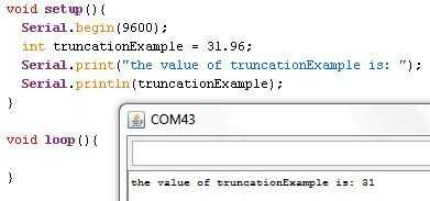 La restricción con números enteros es que son incapaces de aceptar cualquier lugares decimales. Si ha intentado dar a un entero a un valor de 31.96, sólo almacenará el 31. La 0.96 en su lugar se truncarán, lo que significa que se descartarán completamente con ningún tipo de redondeo.