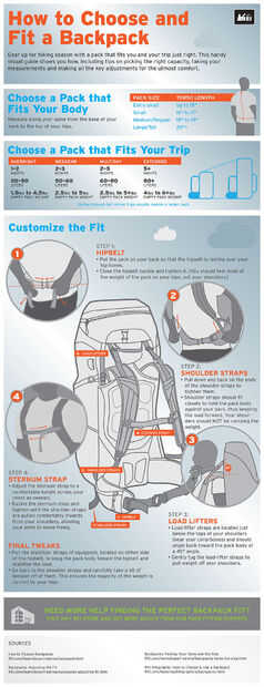 Comprar una mochila de doble compartimiento. Paquetes militares tienen mucha capacidad para agregar y para colgar accesorios en el exterior. Usé la mochila de mis días en la marina. Si usted quiere comprar una mochila, para ello instructable o para uso general, la buena gente de REI con estas infografías en sus sitios Web. El enlace está en el gráfico para su conveniencia.