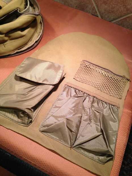 - Si tiene bolsillos y cosas buenas; trasladar a la parte posterior del paquete usando el pegamento de tela en los siguientes pasos para mantener unos bolsillos más disponibles.