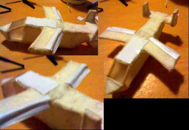 Corte trozos de papel blanco y pegar en la superficie del modelo. Como en la fotografía. Tratar de hacer la mirada superficial tan suave como sea posible