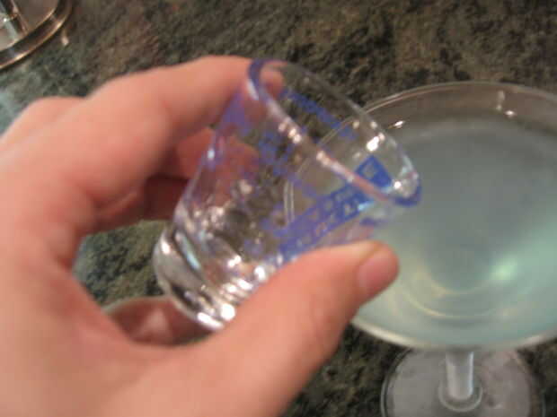 Vierta los ingredientes de la coctelera en una copa de cóctel y superior si fuera con su tónica!