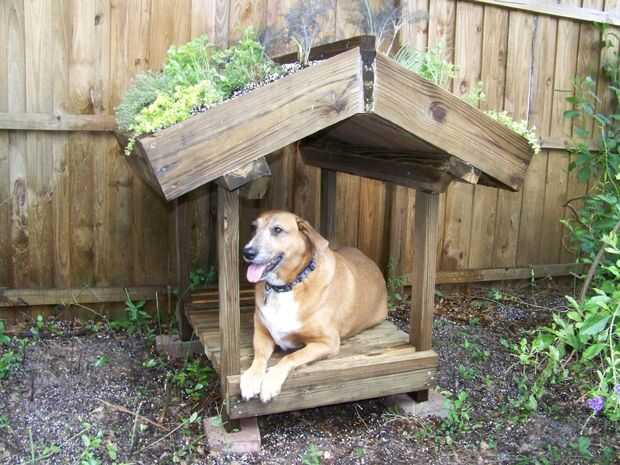 Verde con techo de terraza de perro