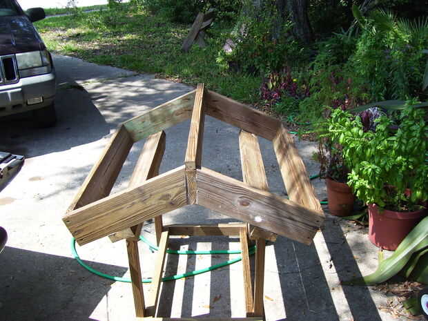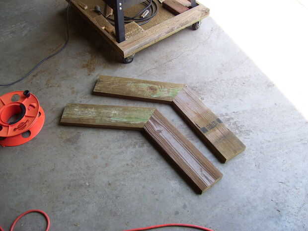 Comienza por cortar cuatro trozos de viga 21 pulgadas de largo con un 22,5 grados corte Cruz en un extremo de cada uno.