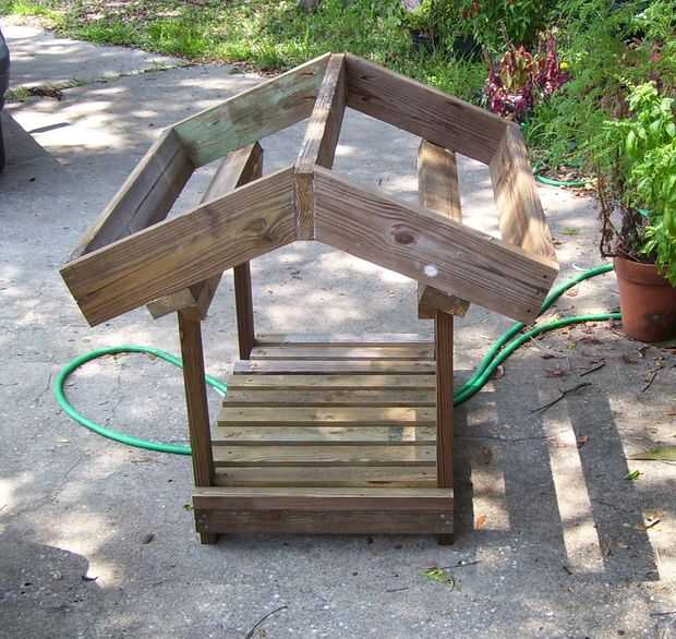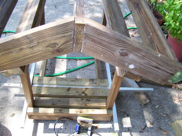 La tarima se corta de 2x3s 24 pulgadas de largo, están espaciados a 1 pulgada de distancia, solía aluminio cuadrado stock todo alineado (madera funcionaría así) y con un solo tornillo y sin adhesivo en cada extremo. Algunos cortes personalizados son necesarios alrededor de los montantes.