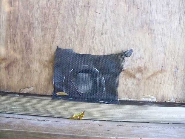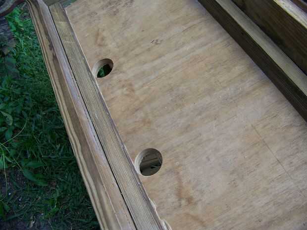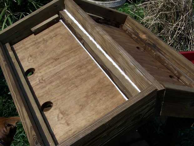 Para drenaje a perforar un par de agujeros de 2 pulgadas a lo largo del borde inferior del panel y fijar proyección de nylon sobre. A lo largo de la cresta superior, para la comodidad de los perros, se utilizó masilla para sellar las grietas para evitar que gotee.