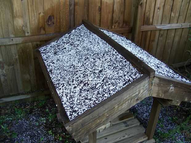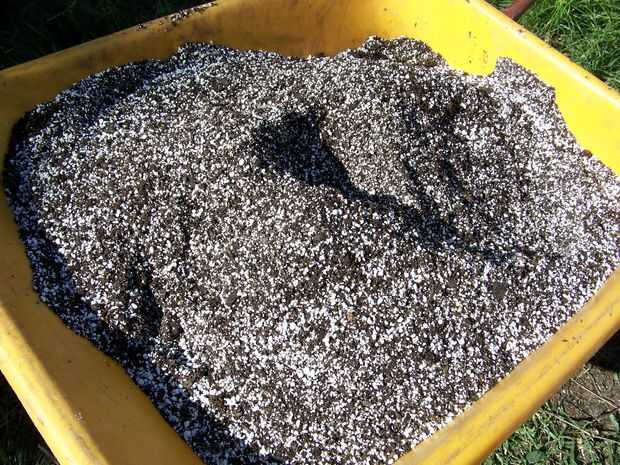 Es importante tener un peso ligero, bien drenado para medios de comunicación, he que logra esto combinando partes iguales comerciales para macetas suelo con perlita, con la adición de un fertilizante de liberación lenta, siguiendo las indicaciones del rótulo. El suelo se transmite a la caja usando cuidado de no comprimir los medios de comunicación, humectación para mantener en su lugar. Usé 6 pies cúbicos total siembra de medios de comunicación.