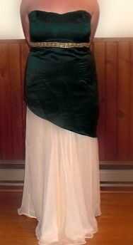 este vestido se hizo mediante la modificación de ciertos patrones básicos para adaptarse a la estructura de los diseños. Está hecho de Satén y gasa. La camisa de Gasa cosida a la guarnición y el adorno dorado en la cintura tiene un poco de pedrería.