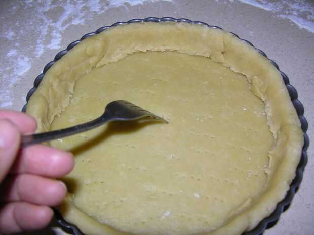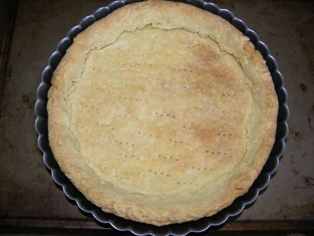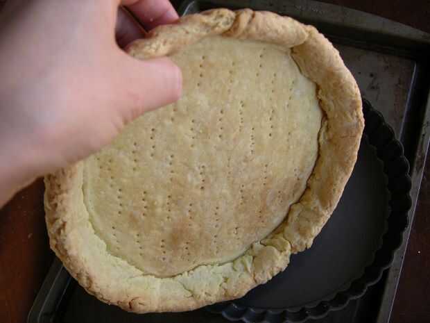 Precalentar el horno a 400 grados. Sobre una superficie ligeramente enharinada, estirar la masa en una ronda de 11 pulgadas. Rodillo a rodillo y colóquela sobre un molde de tarta de 9 pulgadas con fondo desmontable y doblar para hacer un borde de doble espesor. Fondo de Pierce de la masa en todas partes con un tenedor para ventilación evitar que la masa estalla y rompe durante el horneado. Congelar hasta que estén firmes, unos 15 minutos. Línea de tartaleta con pergamino y rellenar con arroz o frijoles secos como pesos de pie. Hornear hasta que la corteza es firme alrededor de los bordes, unos 20 minutos. Retire el pergamino y pesos. Reducir el horno a 375 grados y continuar la cocción hasta que la corteza esté pálidos oro, 10 a 15 minutos. Deje enfriar sobre una rejilla.