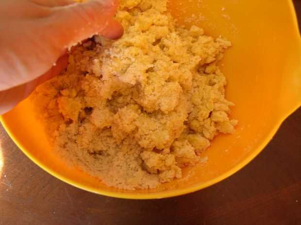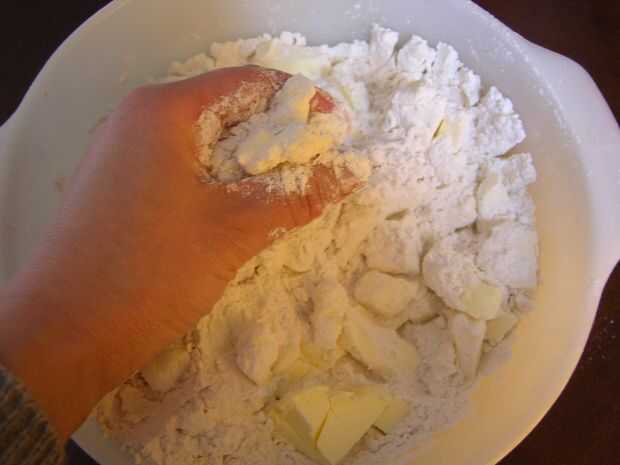 Agregar la manteca, frotar hasta que la mezcla se asemeja a las migas gruesas.