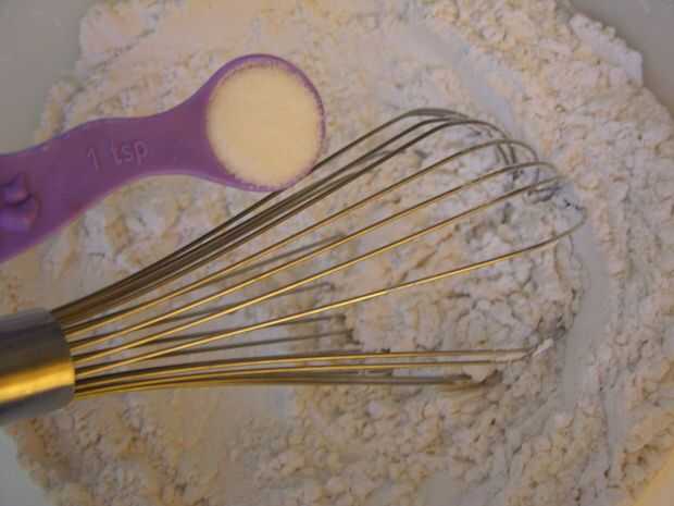 Tamice la harina en un tazón grande, agregue sal y bata para combinar.