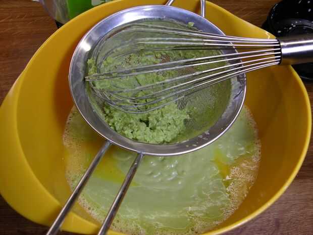 Caliente el aceite en una sartén sobre fuego medio alto. Cocinar la cebolla, revolviendo frecuentemente, hasta que estén tiernos, unos 3 minutos. Reserva 1/2 taza de arvejas y agregar guisantes restantes a la cacerola; cocinar 2 minutos más. Agregue leche y crema de leche y hervir a fuego medio-bajo durante 10 minutos. Sazonar con sal y pimienta y retirar del fuego. Deja enfriar ligeramente antes de triturar en una licuadora. Batir los huevos y la yema en un bol grande y poco a poco la tensión puré de guisante a través de un colador fino sobre él; recoger los sólidos con excluidos en los ingredientes de la corteza y flanes de huevo y hacer un delicioso huevo frito de color verdoso blanco, mezclar.