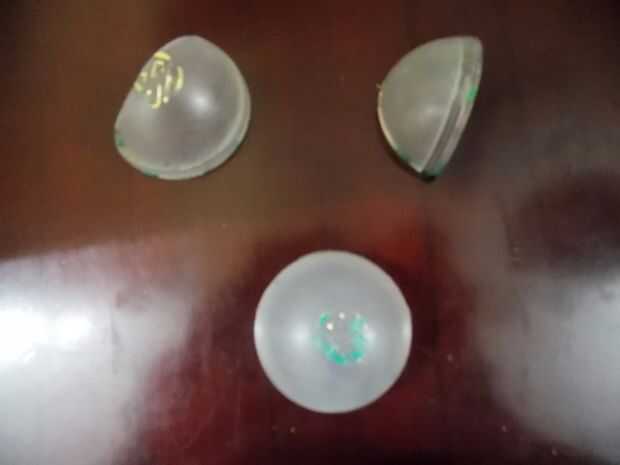 3. una vez más, cortar la otra pieza de la bola en la mitad como se muestra en las imágenes
