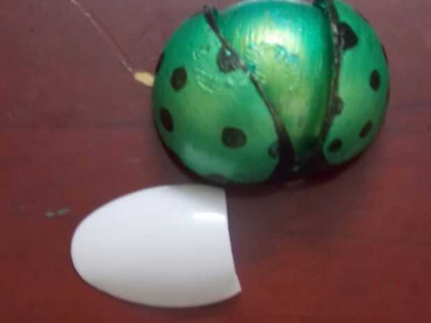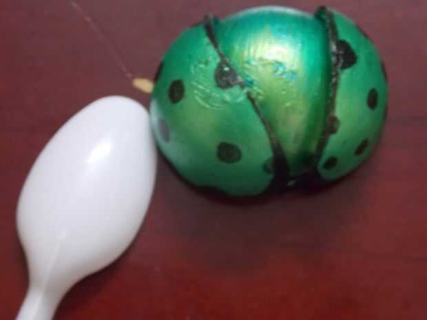13 Coloque una cinta doble en la cuchara y pegarlo en el hemisferio o el cuerpo del insecto