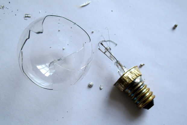 En primer lugar coge un trozo de tela y rociar algo de agua en él. Luego agarra la parte de cristal de la bombilla con la tela en su palma. Esto protegerá su mano si el vidrio se rompe.