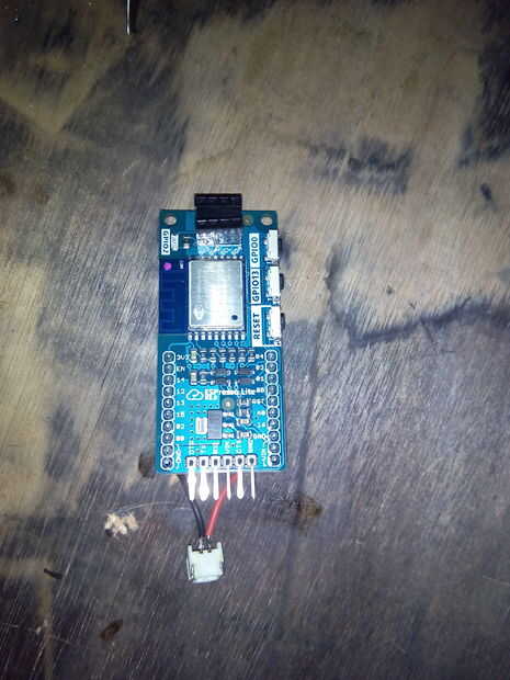 De igual manera soldamos el cable hembra con conector JST un los pines de Vcc y GND en el ESP.