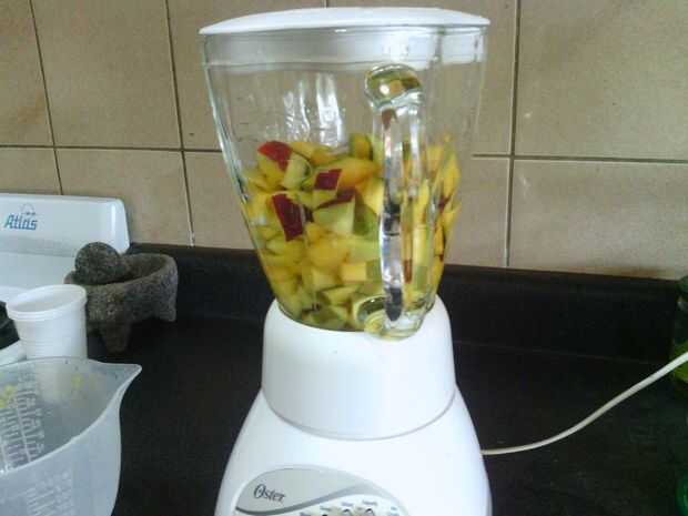 Pequeña ADVERTENCIA: cuidado de mantener la tapa en la batidora, para evitar volver a decorar las cocinas en la fruta