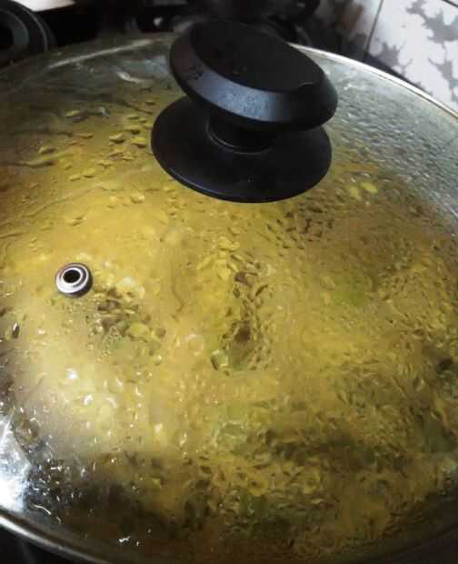 10. Agregue sal y chiles verdes fritos y cocinar a fuego lento durante 7-9 minutos más.